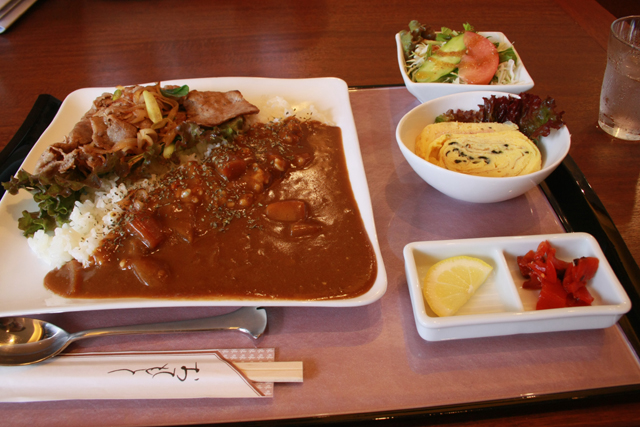 高価なステーキは避けて、カレーに近江牛の薄切り肉を添えた一品。
